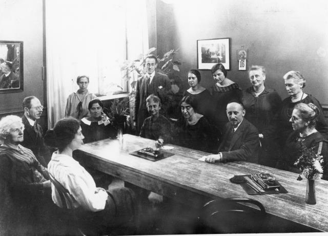 Alberto Jonas (1889–1942) unterrichtete von 1922 bis 1924 in den Fächern Hebräisch, Griechisch und Latein an der Talmud-Tora-Schule, bevor er 1924 zum Direktor der Israelitischen Töchterschule ernannt wurde. Während seiner Amtszeit erfolgte eine organisatorische und pädagogische Weitergestaltung der einstigen Armenschule für Mädchen von 1798, die den Ansprüchen einer modernen Mädchenbildung gerecht wurde. Im Jahr 1930 wurde die Israelitische Töchterschule als Volks- und Realschule staatlich anerkannt. Nachdem die Nationalsozialisten 1939 die Israelitische Töchterschule sowie die Talmud-Tora-Schule in den Räumlichkeiten der Mädchenschule unter dem Namen „Volks- und Höhere Schule für Juden“ vereinigten, wurde Jonas 1940 zu ihrem Direktor ernannt. Gemeinsam mit seinem Kollegium versuchte er für die noch verbliebenen Kinder diese letzte bestehende jüdische Schule als einen Ort der Geborgenheit mit einem möglichst ungestörten Schulalltag zu bewahren. Am 19.7.1942 wurde Jonas gemeinsam mit seiner Frau, der Schulärztin Marie Anna Jonas, sowie seiner Tochter Esther nach Theresienstadt deportiert, wo er nur wenige Wochen später, am 29. August, verstarb.