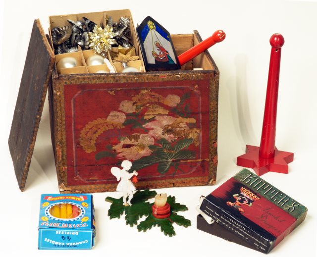 Der Nachlass des Ehepaars Salzberg enthält auch eine Kiste, in der sich Weihnachtsschmuck sowie Utensilien für Chanukka finden. Chanukka, das Lichterfest in Erinnerung an die Reinigung des Jerusalemer Tempels durch die Makkabäer, ist eines der bedeutendsten Feste im Judentum, das acht Tage lang im November/Dezember gefeiert wird. Max Salzberg veröffentlichte anlässlich des Festes im Dezember 1949 auch in der „Allgemeinen Wochenzeitung der Juden in Deutschland“ eine Kurzgeschichte über einen „gestohlenen Chanukkaleuchter“. Das Anzünden der Kerzen des achtarmigen Leuchters ist eine der wichtigsten Festtraditionen und auch die Salzbergs hatten Chanukka-Kerzen in ihrem Haushalt. Wie genau sie Weihnachten und Chanukka feierten, ist nicht bekannt. Es ist jedoch anzunehmen, dass die religiösen Feste für das Ehepaar von Bedeutung waren.