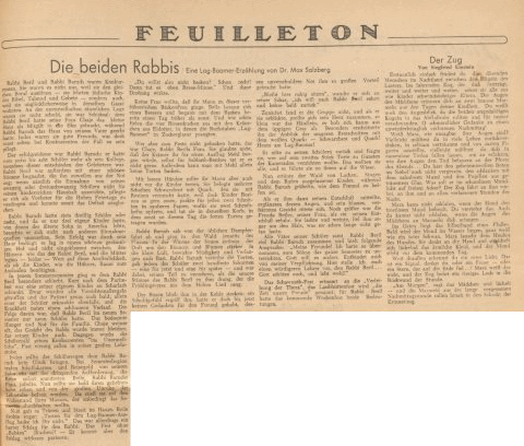 In den ab 1947 im „Jüdischen Gemeindeblatt für die britische Zone“ veröffentlichten Kurzgeschichten zu bedeutenden jüdischen Festen knüpfte Salzberg an diese Kindheitserlebnisse an. Ab Beginn der 1950er-Jahre waren entsprechende Beiträge auch fester Bestandteil der „Allgemeinen Wochenzeitung der Juden in Deutschland“. Diese wurde 1946 als „Jüdisches Gemeindeblatt für die Nord-Rheinprovinz und Westfalen“ gegründet. Der erste Chefredakteur und Gründungsherausgeber war der Journalist Karl Marx, der 1946 als einer der ersten jüdischen Emigranten nach Deutschland zurückkehrte. Mit dem Gemeindeblatt als Lizenzzeitung war er maßgeblich am Wiederaufbau jüdischer Strukturen beteiligt, so auch am Zentralrat der Juden in Deutschland. 1948 wurde das Blatt zunächst in „Allgemeine Wochenzeitung“ umbenannt, die seit 1955 als „Allgemeine jüdische Wochenzeitung“ bzw. „Jüdische Allgemeine“ erscheint und bis heute die bedeutendste und auflagenstärkste deutsch-jüdische Zeitung ist.