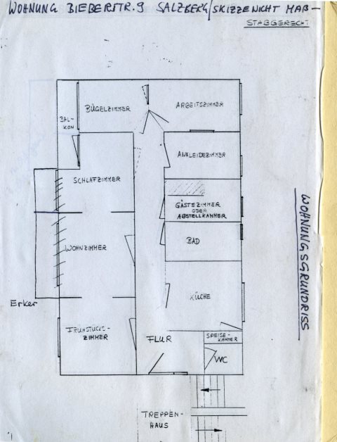 Der jüdische Privatgelehrte und Schriftsteller Max Salzberg (1884-1954) mietete in den 1930er-Jahren zusammen mit seiner Frau eine Wohnung in der Bieberstraße. Seine Ehefrau Frida (1893-1993), Lehrerin an verschiedenen Mädchenschulen, lebte bis zu ihrem Tod in dieser Wohnung. In den fast 40 Jahre nach dem Tod ihres Mannes nahm sie kaum Veränderungen vor, die Erinnerung an ihren Mann blieb in nahezu allen Räumen allgegenwärtig.