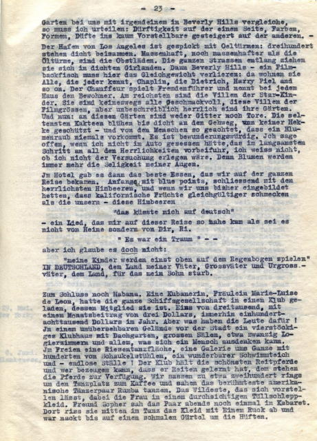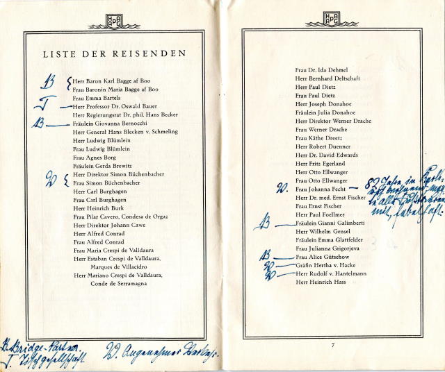 „Fühlung mit anderen Passagieren haben wir bisher noch nicht genommen. Das kommt noch stärker als einem lieb ist. Ich habe heute schon Angst vor dem Bordklatsch.“ (E. Heymann, 1941)
